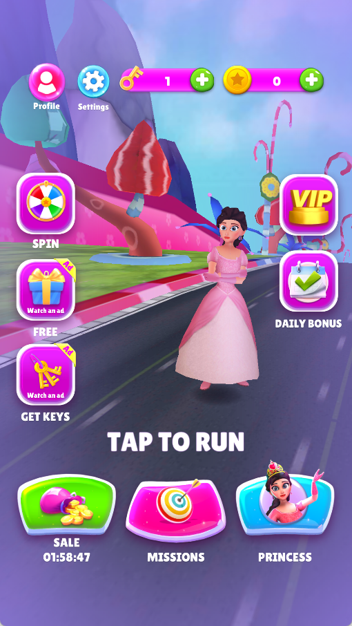玩家通过简单的手势操作控制公主左右移动、跳跃或下滑,巧妙避开赛道上的树木、岩石等自然障碍物与各种陷阱机关。在奔跑过程中要尽可能多地收集金币,这些金币可以用来解锁新角色皮肤和特殊道具。游戏还设置了吸铁石等随机道具,使用后可以在短时间内自动吸附周围的金币,大大提升收集效率。随着奔跑距离的增加,玩家可以获得更高的分数和更丰厚的奖励。