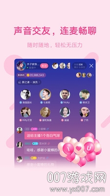 【一起游戏】抢麦唱歌、猜歌红包、PK…各种精彩等你来玩!炫酷直播、海量曲库应有尽有。每周更新热门歌曲,支持多人实时合唱。游戏排行榜激发你的胜负欲,在娱乐中结识更多声音好友。
