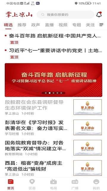 直播服务:实时转播凉山电视台和广播电台的节目,支持多路信号切换,让您随时随地收看收听家乡的广播电视节目。