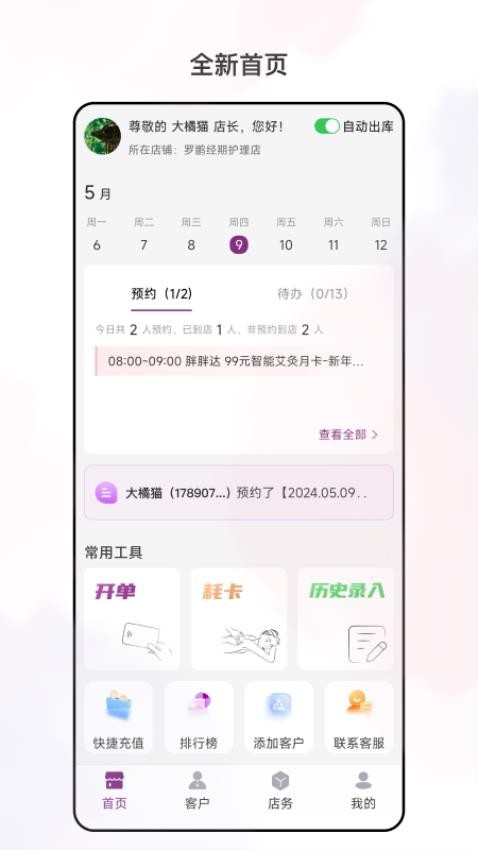 本次更新带来了多项功能优化:首先是新增了顾问式成交功能,帮助店员提升销售技巧;其次是目标拆解工具,让经营目标更易实现;开单耗卡和充值功能也得到完善(注:仅记录不涉及实际支付);同时优化了客户管理界面,提升了操作便捷性;库存管理模块增加了预警功能;经营数据分析部分新增了多维度对比功能,让数据解读更直观。