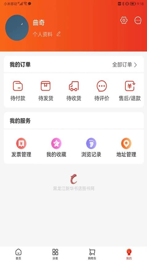 1、在应用商店下载安装黑龙江新华图书网app,完成注册并登录账号;