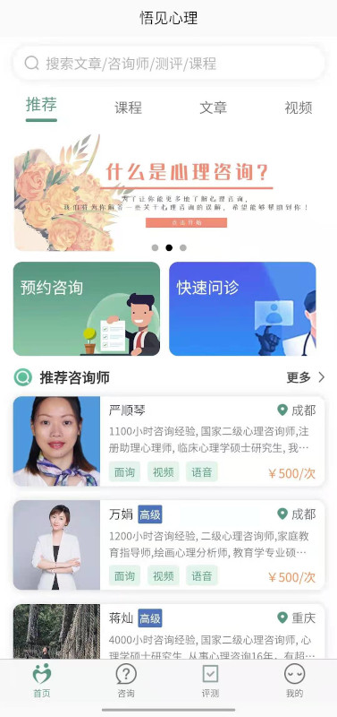 直接在软件中查询带来的心理咨询服务,一键操作,快捷预约,支持多种支付方式;
