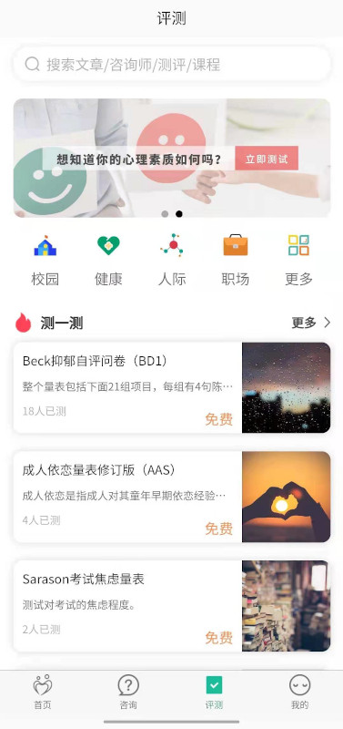 4、免费的心理测试,更加专业的测评试题,去更好的探索用户的内心世界,了解自身状态。