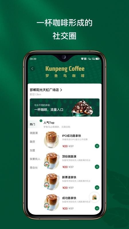 与线下多家精品咖啡店合作,用户可在线浏览菜单、下单支付,享受便捷的咖啡服务。通过咖啡消费积累社交积分,还能解锁更多创业资源。特色"咖啡社交"模式让商务洽谈更加轻松自然。