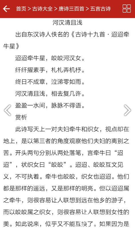 便捷的查找功能:支持按诗人姓名、诗词体裁等多种方式分类查找,内置智能搜索功能,可以快速精准地找到目标诗词,大大提升学习效率。
