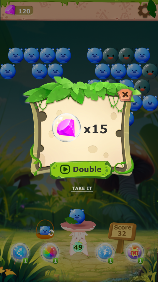游戏开始后,玩家将控制一个可以旋转的炮塔,瞄准与炮塔当前泡泡颜色相同的目标进行射击。成功消除泡泡后,不仅能获得分数奖励,还能收集红色钻石。这些钻石可以用来解锁各种实用道具,比如改变泡泡颜色的魔法道具。当炮塔中的泡泡数量不足时,玩家可以使用积攒的钻石来补充弹药,确保游戏能够持续进行。