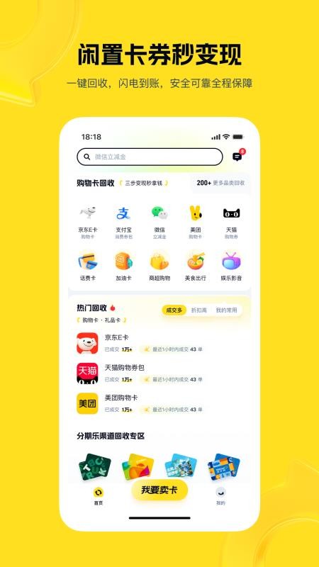 对用户交易的闲置卡券也会进行闪电到账,可以对卖出的卡券收益来极速到账,轻松回收。平台与多家支付机构深度合作,优化资金清算流程,90%以上的订单可在30分钟内完成打款。