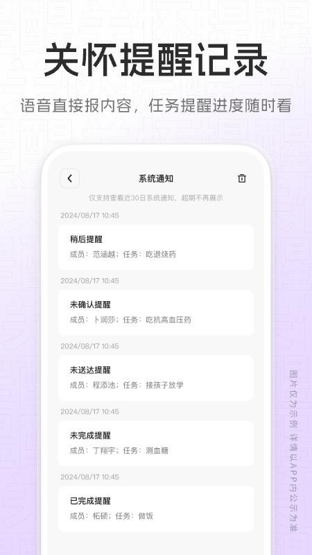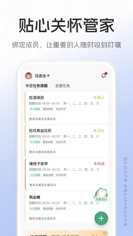 关怀提醒app最新版是一款专为家庭用户设计的智能关怀服务软件,通过数字化方式帮助用户更好地照顾家人。该应用支持添加多个家庭成员,并提供个性化的提醒服务,包括用药时间、生日祝福、医疗预约等各类重要事项的提醒功能。采用电话外呼的主动提醒方式确保家人不会错过任何重要信息,同时支持语音播报功能,让不擅长使用智能手机的长辈也能轻松接收提醒。无论是日常用药管理还是特殊日子的纪念,这款应用都能为用户提供全方位的家庭关怀解决方案,让关爱不再因距离或时间而缺席。