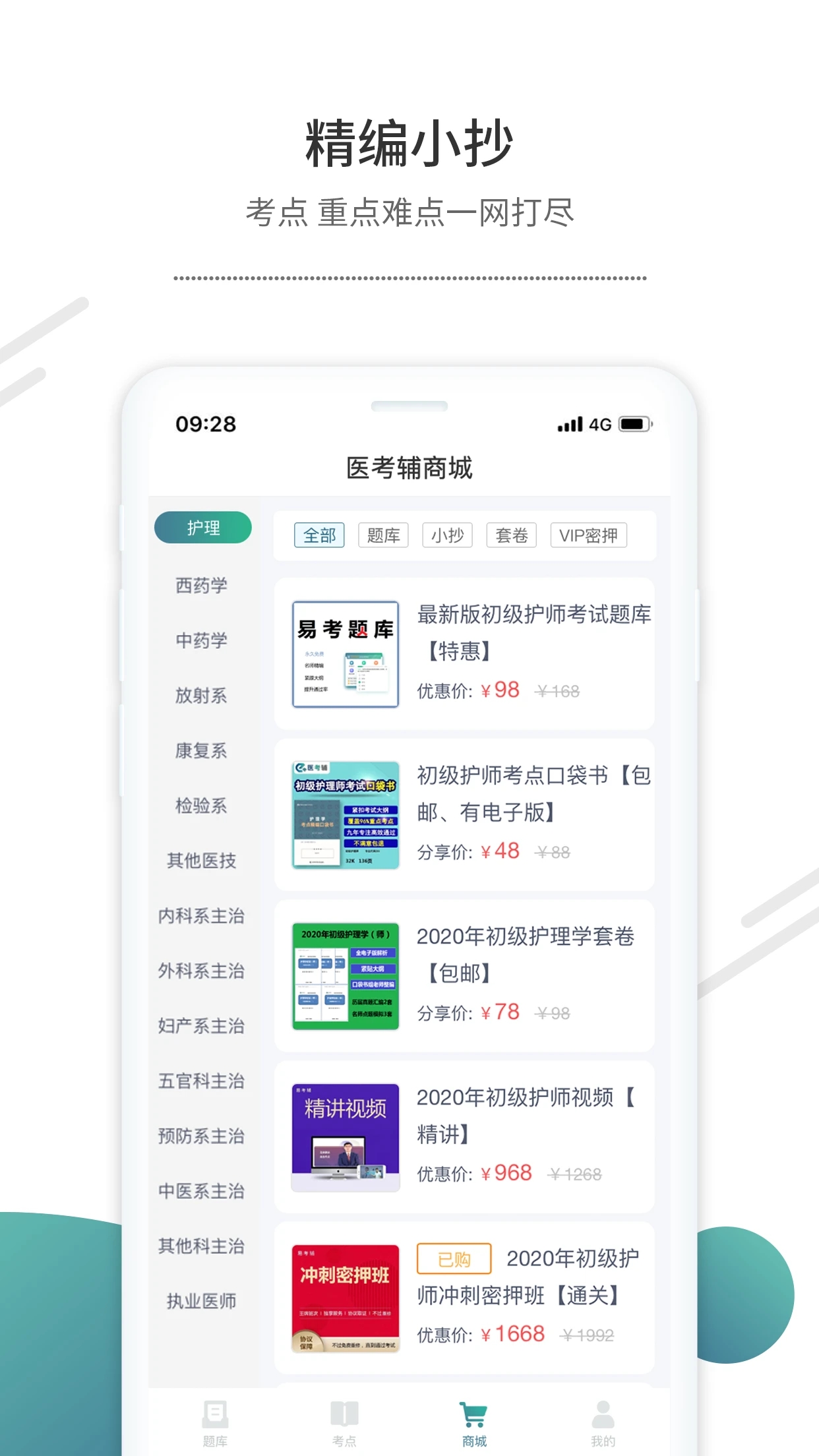 易考辅app涵盖医药卫生领域从初级到高级的各类职称考试,包括但不限于:医药卫生初级、中级职称、高级职称考试,主治医师、主管技师资格考试,药剂士(师)、中药士(师)认证考试,主管药师、执业护士、执业药师、执业医师、助理医师等各类专业资格考试。所有考试科目均可在软件内找到对应的备考资料。