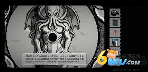 接着向左走,试着与那些邪恶的雕像对话,或许能得到些有趣的线索。雕像的对话内容会根据你的疯狂值而变化,保持理智才能获得准确信息。