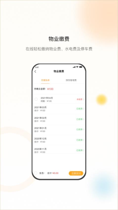 支持在线缴纳物业费、停车费等各项费用,提供多种支付方式选择,缴费记录清晰可查,告别排队等待的烦恼。