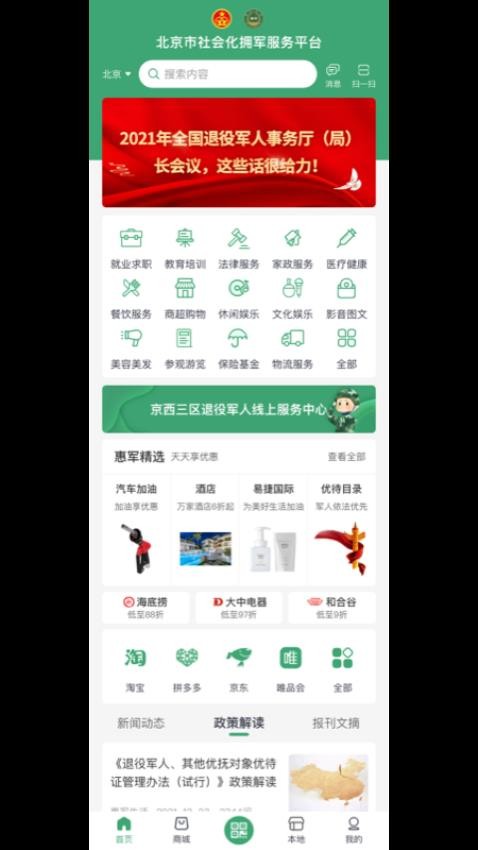 惠军生活app真正做到了想退伍军人之所想,急退伍军人之所急。它不仅是一个购物平台,更是一个全方位的综合服务平台。通过整合各类资源,为退伍军人提供实实在在的优惠和便利。平台界面友好,操作简单,功能全面,是退伍军人日常生活中不可或缺的好帮手。