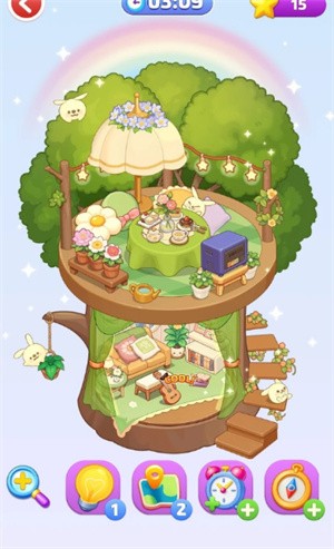 色彩搭配系统是游戏的一大亮点,当玩家选定主色调后,系统会智能生成协调的辅色方案,并贴心地标注出最佳搭配比例,即使是装修新手也能轻松打造专业级的色彩搭配。游戏的操作体验非常流畅,所有装修动作都可以通过简单的拖拽和点击完成,特别适合在碎片化时间游玩,短短几分钟就能完成一次小型装修。游戏中的装饰元素都采用了可爱的卡通风格设计,比如毛绒绒的沙发、印有俏皮图案的墙纸、笑脸样式的小摆件等,每一个细节都充满童趣和温暖。