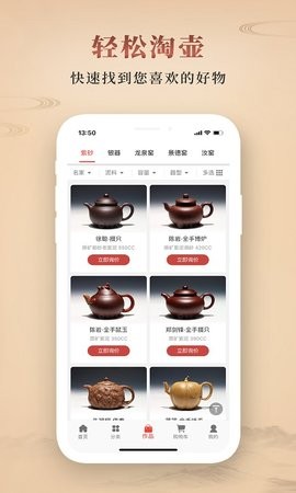 淘壶人是一款专注于紫砂壶及茶具文化的综合性购物平台,致力于为用户提供高品质的紫砂壶、铜器、龙泉窑、汝窑等各类瓷器艺术品。在这里,用户可以轻松浏览海量精美壶具,无论是经典的传统款式还是创新的现代设计,都能满足不同收藏爱好者的需求。平台不仅提供便捷的在线购买服务,还整合了最新最全面的紫砂壶行业资讯,让用户第一时间掌握市场动态、名家作品发布以及行业趋势分析,成为紫砂爱好者不可或缺的信息枢纽。