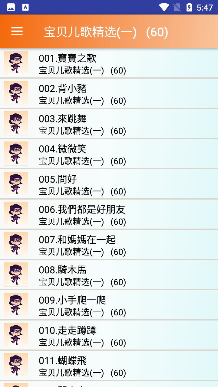 曲目1:宝贝儿歌精选(一)包含20首最受欢迎的经典儿歌