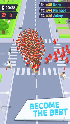 游戏支持最多8名玩家同场竞技,在本地多人模式下展开激烈对抗。你的目标很简单:尽可能多地收集追随者,最终成为拥有最多粉丝的队伍!在这场残酷的城市战争中,你需要灵活运用战术,既可以主动出击抢夺其他队伍的成员,也要小心防范对手的偷袭。游戏还设置了丰富多样的任务系统,完成挑战即可获得稀有皮肤奖励。目前已经推出多款史诗级皮肤,未来还将持续更新更多精彩内容!