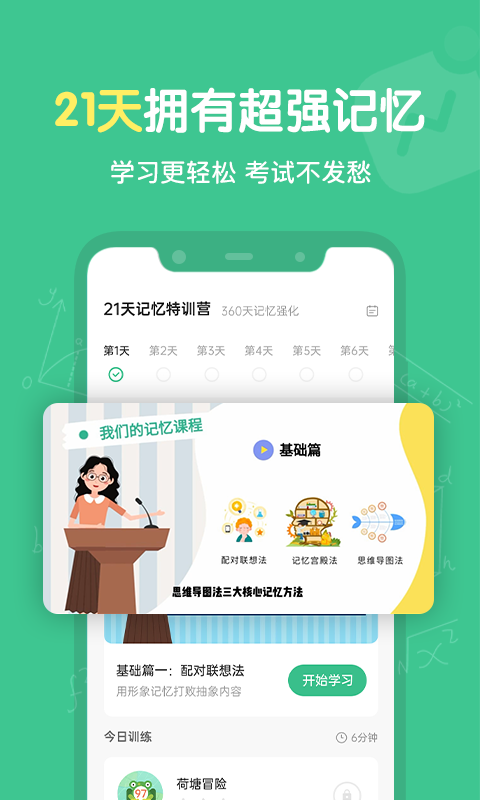 超级记忆力APP是由国内顶尖脑科学专家与记忆大师团队共同研发的创新教育产品。该软件采用独特的动画课程+趣味训练双轨教学模式,完全从儿童认知特点出发设计,相比传统真人录播课程更具吸引力和互动性。软件精心设计了21天系统化特训课程,通过科学的学习路径帮助孩子循序渐进地掌握记忆技巧。