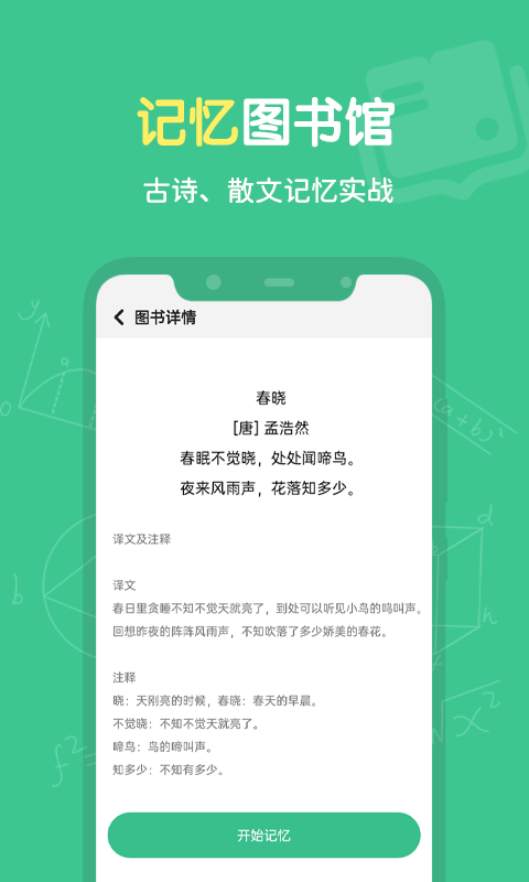 丰富图书资源与智能记忆模式:软件内置大量学生必读的课内外经典图书,并开发了独特的记忆比对功能,让孩子在背诵过程中可以实时检验记忆效果,形成良性循环。