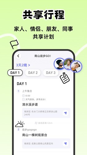 我们提供便捷的多人协作功能,让您和伙伴们轻松创建并编辑行程计划。地图模式一键呈现,让行程规划更直观。支持添加多个兴趣点和路线规划,确保每个成员都能参与行程设计。