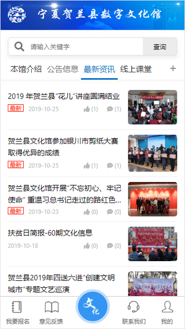 用户还可以在软件内报名参加文化馆的相关活动:实时显示活动剩余名额,支持电子票务和扫码签到功能。