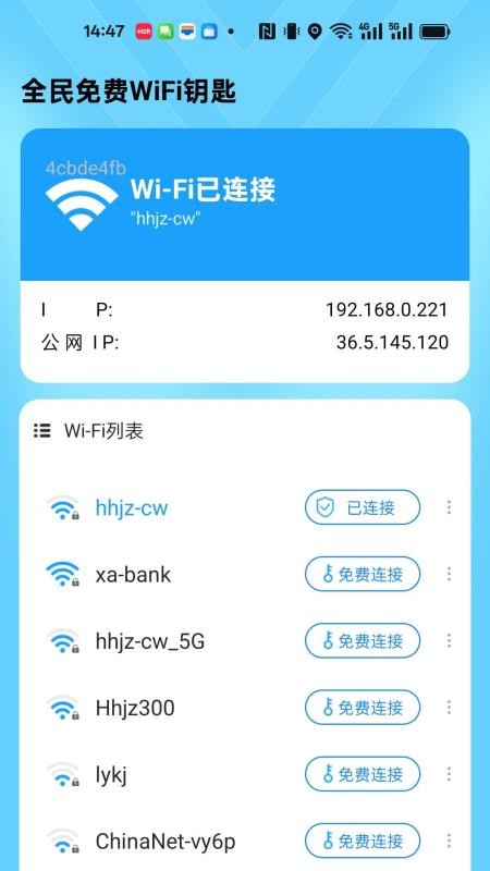 全民免费WiFi钥匙手机版是一款功能强大且完全免费的手机网络管理工具,专注于为用户提供安全稳定的WiFi连接服务和网络优化解决方案。这款软件集成了多项实用功能,不仅能帮助用户轻松连接附近的免费WiFi网络,还能实时监控网络状态、提升网速、保障隐私安全,让上网体验更加流畅无忧。无论是日常使用还是特殊场景需求,全民免费WiFi钥匙手机版都能完美胜任,是智能手机用户不可或缺的得力助手。