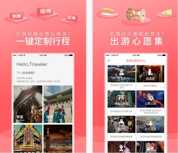 玩美自由行拥有强大的功能体系,能够满足你在旅行中的各种需求。首先,它为你精心准备了泰国、日本、台湾、韩国等多个热门旅游目的地的详细路线规划和行程安排,让你在出发前就能做好充分准备,告别迷茫。其次,这款app还特别设计了旅游心愿单功能,你可以在出行前一键记录下想要实现的旅行愿望,系统会智能推荐相关景点和活动,帮助你在旅途中一一实现,让你的旅行更加完美。