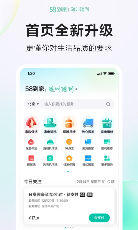 选择58到家,就是选择放心、便捷、专业的生活服务体验。无论您需要什么样的生活服务,我们都能为您提供最合适的解决方案,让您从繁琐的家务中解放出来,享受更多属于自己的美好时光。58到家,您身边的生活服务专家,随时准备为您服务。