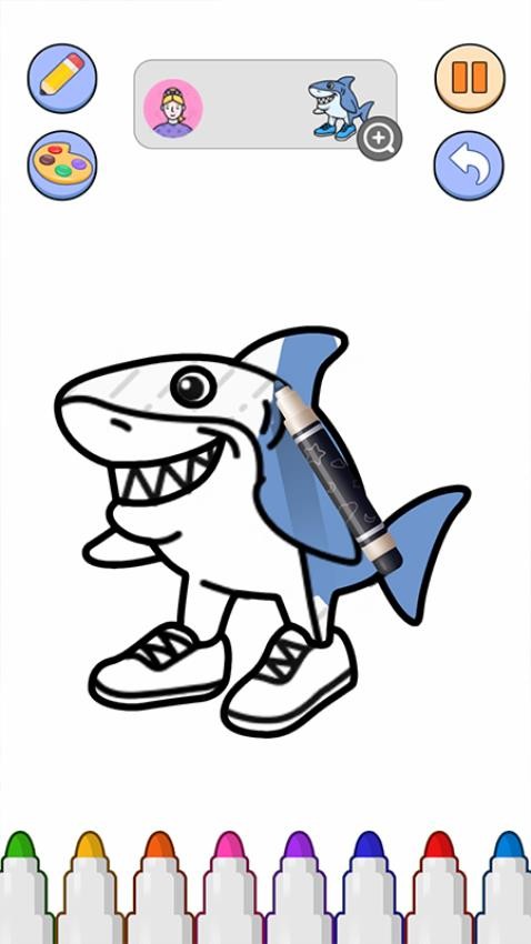进入游戏主界面后,点击左侧第一个艺术家模式按钮,该选项带有调色板图标,点击后会进入绘画主题选择界面。新手玩家可以优先选择"新手推荐"标签下的简化线稿,这些图案轮廓清晰,分区明确,更容易上手。在图案选择页面中,选择左上角第一个基础图案鲨鱼,选定后画面会切换至带虚线轮廓的绘画板界面。系统会智能提示每个区域建议使用的颜色,玩家也可以完全按照自己的喜好进行创作。用手指轻触屏幕任意位置即可开始作画,系统会根据触点自动生成流畅线条,连续滑动可完成完整轮廓描绘。绘画过程中可以随时使用撤销功能修正笔触,或者切换不同粗细的虚拟画笔。从底部调色板中选择与提示相符的颜色鲨鱼,点击后将该颜色拖拽至图案指定区域完成填色。填色时会有ASMR音效反馈,让创作过程更具沉浸感。