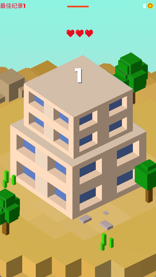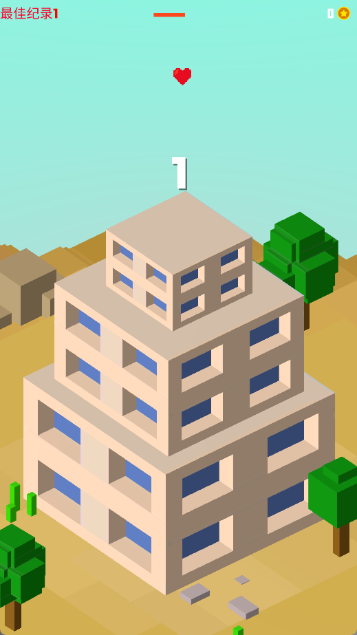点击屏幕操控建筑材料下落,精准堆叠在上一个材料上以增加大厦高度,同时要注意材料的不规则掉落,及时调整放置位置保持建筑稳定。随着游戏进行需要在有限时间内尽可能多地建造楼层,最终根据楼层数和高度获得评分。游戏还加入了动态难度系统,随着玩家技巧提升,建筑材料的形状和下落方式会变得更加复杂,为玩家带来持续的新鲜感和挑战性。