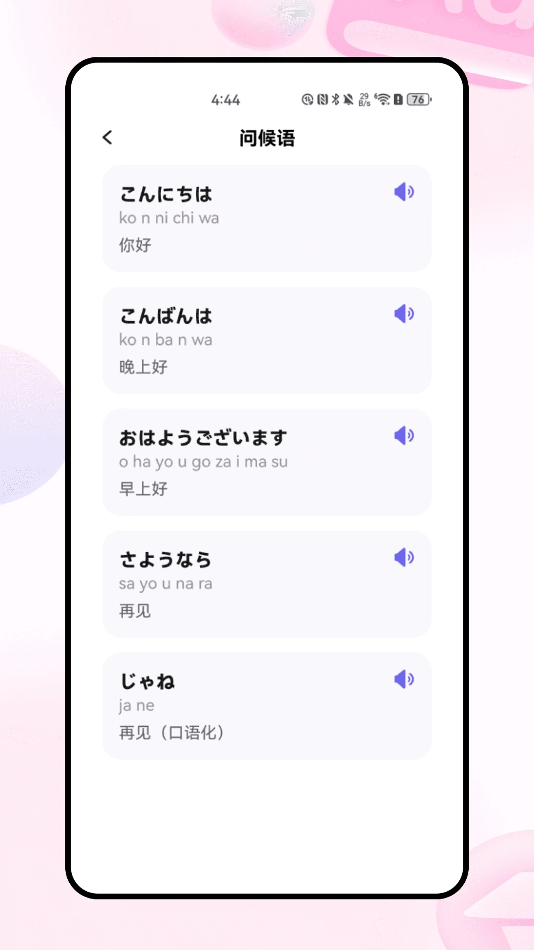 提供发音示范功能,帮助用户准确掌握日语假名和口语的发音技巧。