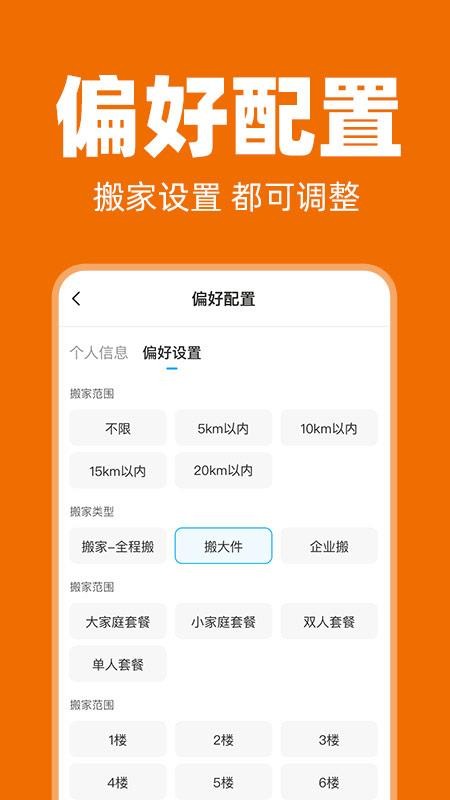 还可以让你实时进行偏好设置,便捷设置调整接单偏好,一键实现搬家设置。系统会记忆司机的历史接单偏好,智能学习接单习惯,支持设置常跑路线、货物重量范围、装卸货时间等20余项参数,打造个性化的接单体验。