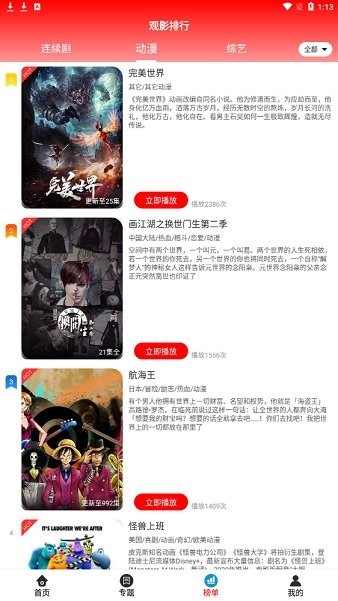 内容涵盖电影、电视剧、动漫、综艺、纪录片等全品类节目,更新速度领先行业。热门剧集基本与电视台同步更新,让用户不错过任何精彩内容。