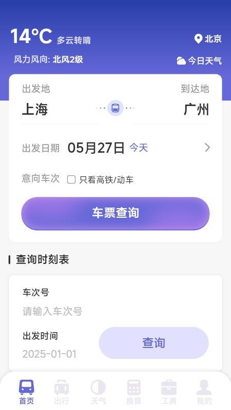 除了核心的票务查询功能外,铁路火车高铁查票APP还集成了多项实用工具,如天气预报、单位换算、景点攻略等,为用户出行提供全方位的便利。无论是查询目的地的天气情况,还是进行日常单位换算,都能在软件内轻松完成。此外,软件界面设计简洁明了,操作逻辑清晰,即使是初次使用的用户也能快速上手。