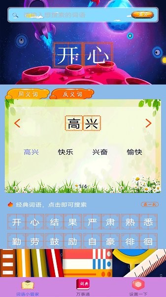 正反义词模块通过智能算法为用户提供精准的词语关系网络,不仅展示基础的正反义词对照,还提供词语的情感色彩分析、使用场景建议等进阶内容。一键搜索即可获取丰富多样的词语搭配方案,有效提升学生的词汇运用能力和表达水平。