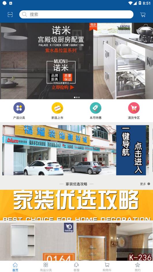 福耀建材app是一款专注于装饰五金批发的综合性电商平台,为用户提供一站式建材采购解决方案。平台汇聚了国内外知名品牌的优质产品,包括浴室柜、马桶、花洒、门铰、门拉手、滑轨、诺米拉篮等各类装饰五金配件,同时引进了进口百隆、德国海帝诗等国际高端品牌,满足不同用户的多样化需求。