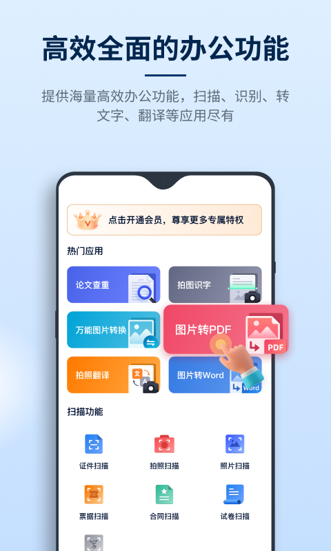 软件内置的万能扫描功能可以完美替代传统扫描仪,用户只需通过摄像头即可快速扫描各种文件或物件,生成清晰的电子文档。无论是合同、名片还是书籍,都能轻松扫描并保存为PDF或图片格式,方便后续编辑和分享。