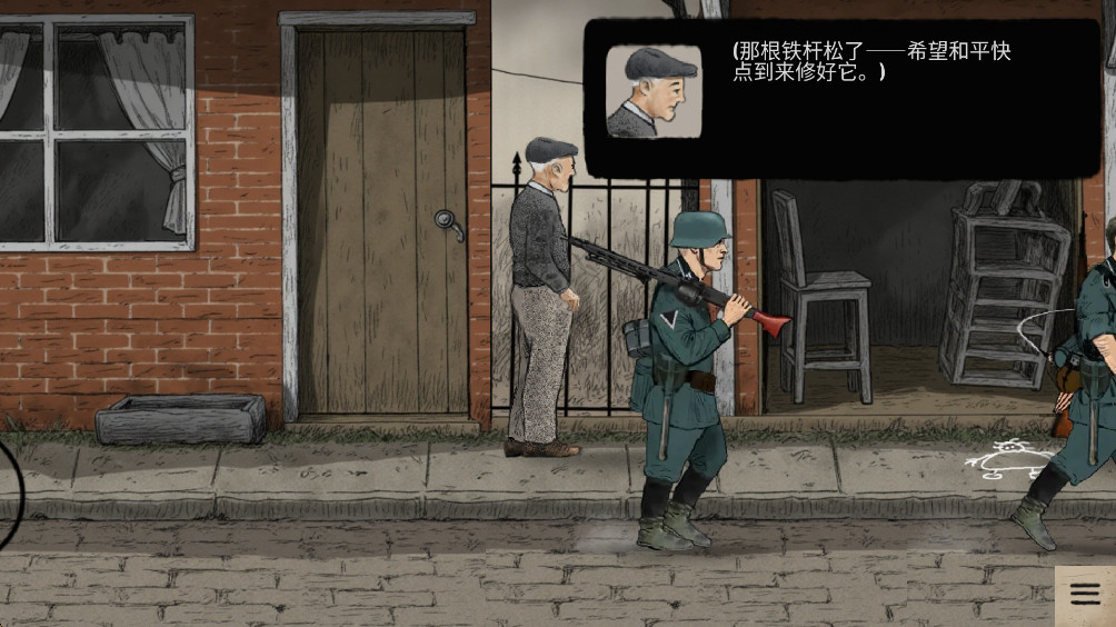 首先进入勇敢的人游戏,打开第一章,你将置身于一个充满细节的战争场景中,通过观察环境与角色互动逐步推进剧情。游戏中的足印和手掌是关键的交互提示,点击手掌可以与人物展开对话,获取重要信息或触发剧情分支,同时还能拾取场景中的物品。足印则会在对话完成后指引你前往下一个剧情节点,确保你不会错过关键情节。走到栏杆位置时,角色会感慨铁器杆子的松动,并表达对和平的渴望,这些细节对话丰富了角色的背景故事。你还可以与其他人物搭话,了解他们的经历和观点,这些互动将影响后续剧情的发展。完成当前场景的探索后,返回初始地点即可进入下一段剧情。按照手掌的提示解开谜题或做出选择,这些互动设计让玩家更深入地参与到故事中。除此之外,游戏中还隐藏着许多支线任务和收集要素,等待玩家发掘,为游戏体验增添了更多可玩性。