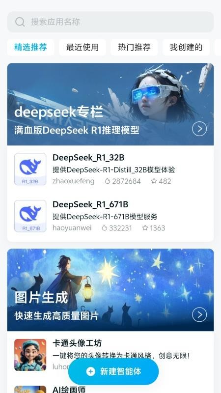 系统会根据用户使用习惯和需求,智能推荐最适合的AI智能体。平台还特别设置了热门推荐和精选推荐专区,让用户轻松发现最新、最实用的AI工具。