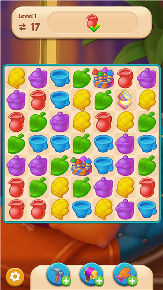 游戏开始时通过详细的新手引导,帮助玩家快速掌握三消玩法规则,了解如何通过匹配同色方块来生成道具,同时认识木板、藤蔓等不同障碍的特性。随着游戏深入,玩家需要合理规划每一步操作来完成关卡目标,收集更多建设资源。
