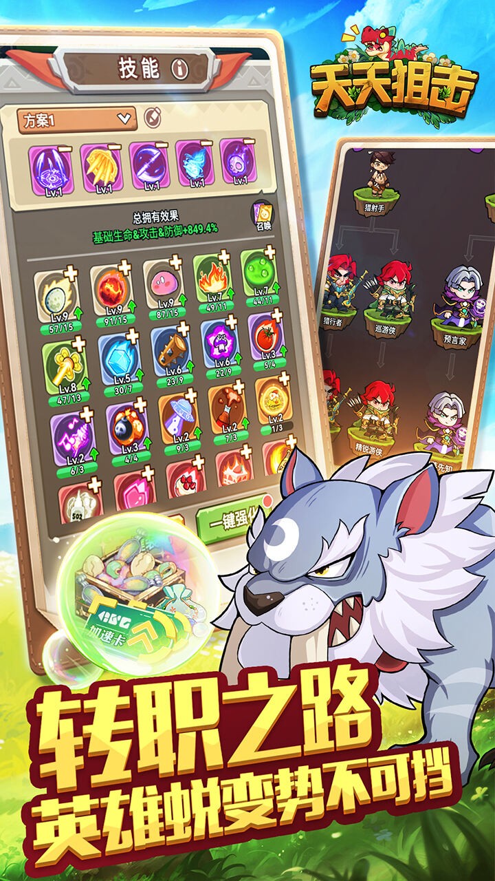 《天天狙击》是一款以可爱小鸡为主角的休闲放置类角色扮演手游,为玩家带来轻松有趣的冒险体验。游戏采用清新明亮的卡通画风,搭配简单易上手的操作方式,让玩家在享受战斗乐趣的同时也能感受到轻松愉悦的游戏氛围。在这个奇妙的世界里,你将带领萌萌的小鸡军团,面对形态各异的怪兽大军,只需一键即可开启全屏割草模式,体验爆爽战斗的快感。