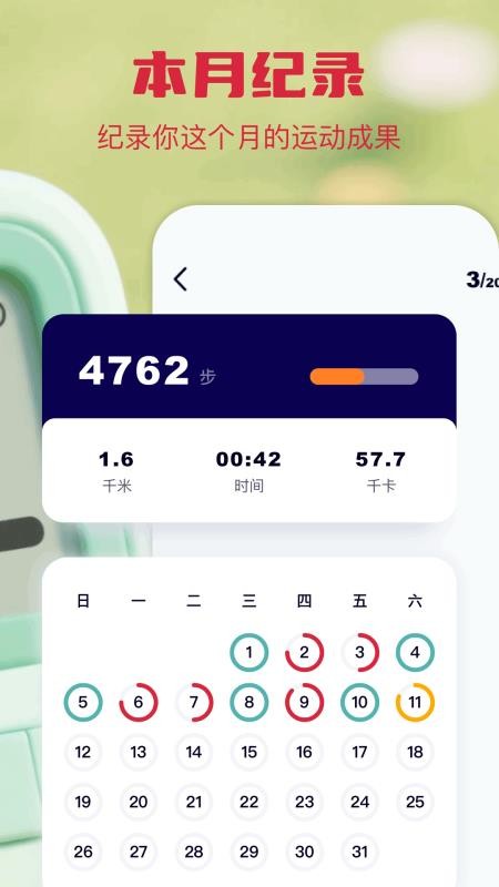 软件首页直观展示用户当日的运动步数数据,同时提供详细的运动时长和卡路里消耗统计。用户可以随时查看这些数据,了解自己的运动情况,并根据数据调整运动计划。