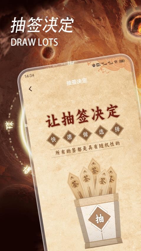 抽签决定功能的所有签文均采用随机算法生成,确保结果的公平性和不可预测性,为用户提供真实的决策参考。