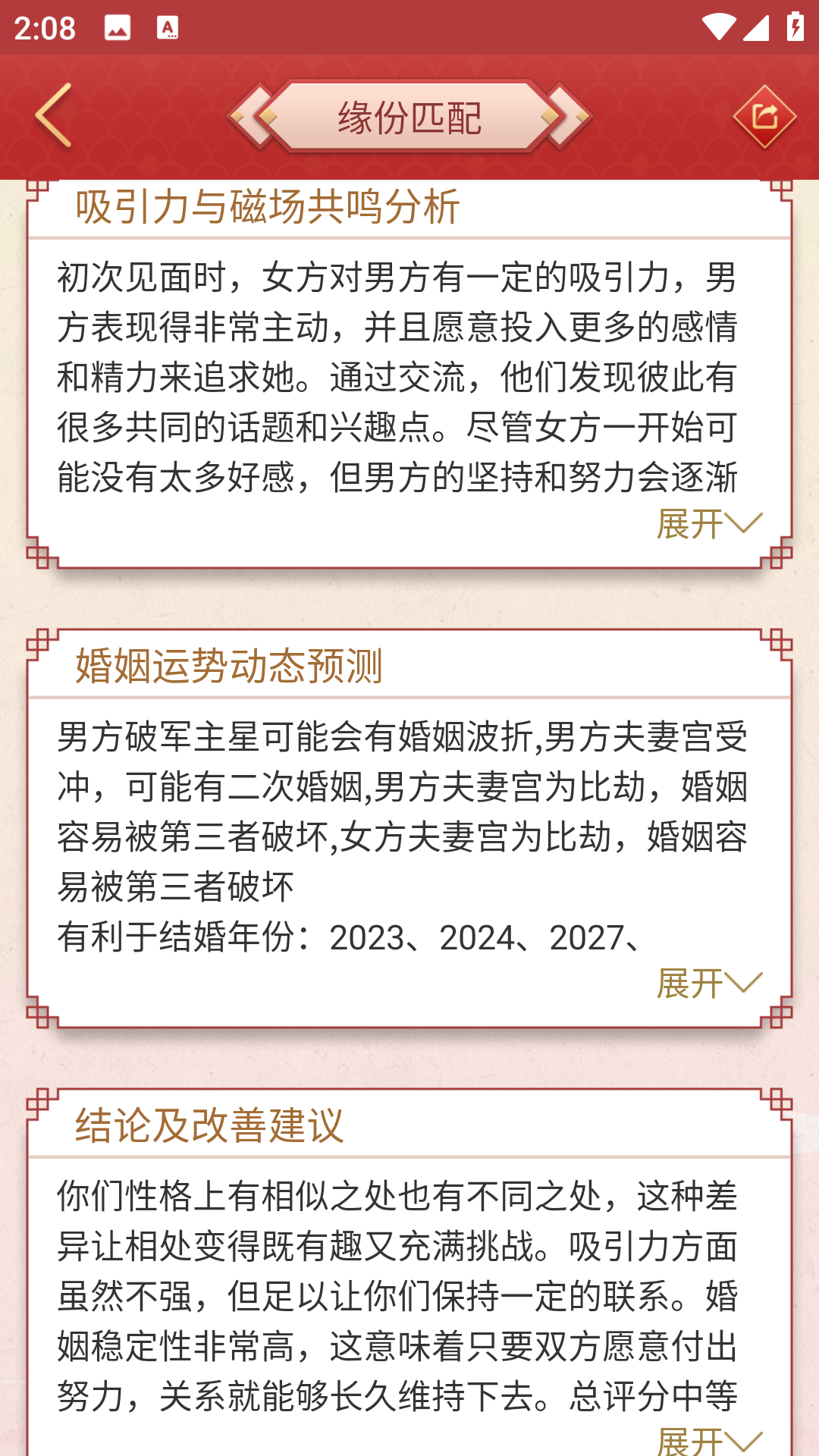 【浪漫姓名匹配】通过姓名学原理分析两人之间的缘分指数。不仅考虑姓名的五行相生相克关系,还结合命理要素评估情感契合度,为寻找理想伴侣或改善现有关系提供参考依据。