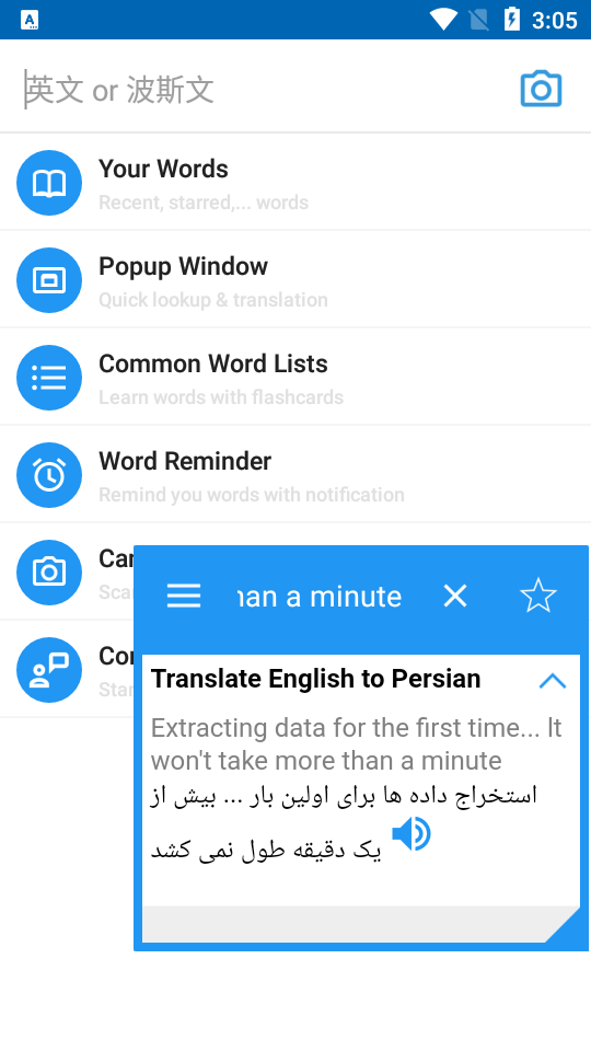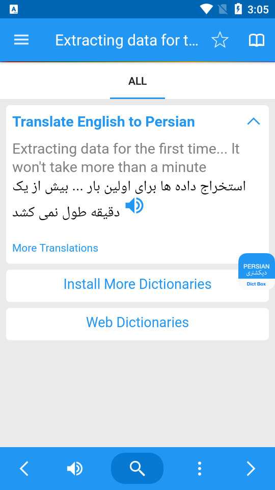 文字发音功能可以帮助用户掌握单词的标准读法,支持美式和英式两种发音模式;创新的图片词典功能让用户可以通过视觉方式记忆单词;文字提醒功能则能帮助用户建立系统的学习计划。无需互联网连接的特性让用户在任何环境下都能使用,而双向翻译功能不仅支持英语到波斯语的转换,还能实现波斯语到英语的精准翻译。此外,dictbox还提供了便捷的跨应用翻译功能,用户可以直接在其他应用程序中调用翻译服务。