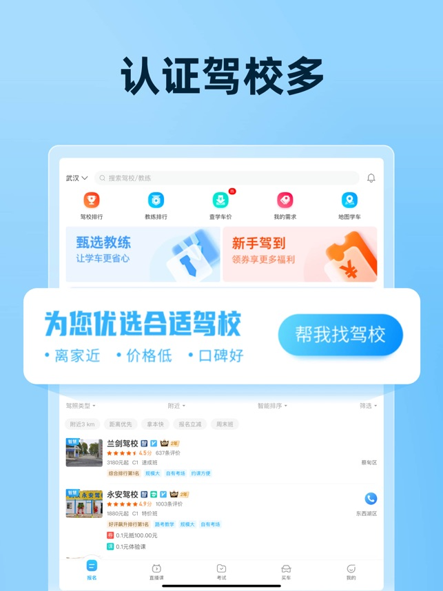 全程服务:提供从驾校筛选、报名咨询到考试预约的全流程服务,建立完善的学车交流社区和客服支持体系。