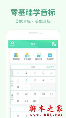 首页设计简洁明了,未登录状态下即可浏览基础知识板块。元音和辅音音标分类展示,配有发音示范按钮,用户点击即可开始学习。首页还设有学习进度追踪和个性化推荐功能。