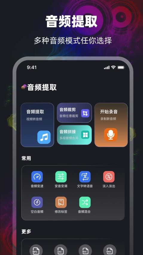 作为一款专业的音频剪辑工具,它能够帮助用户从视频中无损提取音频片段,并支持对提取的音频进行自定义编辑与制作,让音频处理变得更加高效。用户可以通过该应用快速完成音频文件的剪辑、拼接、混音等操作,同时还能将处理后的音频文件轻松保存至本地,便于随时查看和使用。此外,该应用还提供了丰富的音频格式转换功能,支持多种主流音频格式的相互转换,满足不同场景下的使用需求。