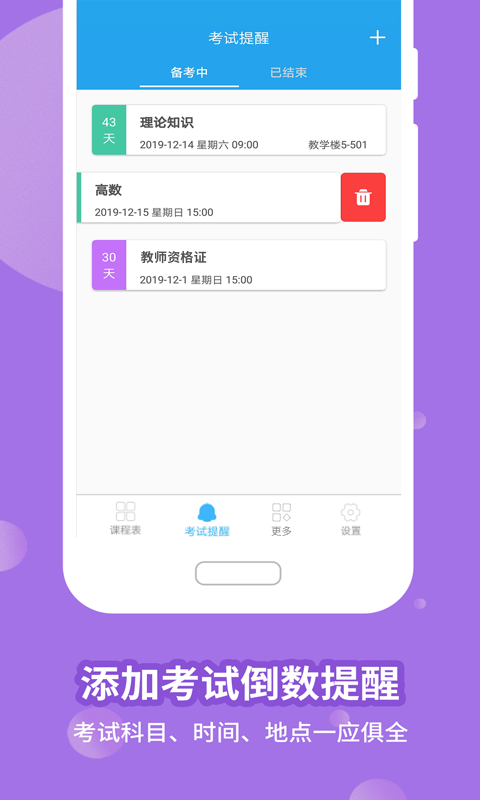 B:支持添加考试的详细信息。除了基本的考试时间和科目,用户还能备注考试重点或复习计划,帮助更有条理地准备重要测试。此外,应用会提前推送复习提醒,避免临时抱佛脚。
