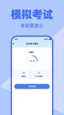 这款app的智能错题收集系统会自动记录用户做错的题目,生成专属错题集,方便用户针对薄弱环节进行重点复习。软件还提供模拟考试功能,完全还原真实考试场景,包括限时答题等环节,让用户提前适应考试节奏。特别值得一提的是,app支持离线使用,无需联网就能刷题,让用户在任何时间、任何地点都能利用碎片时间学习。