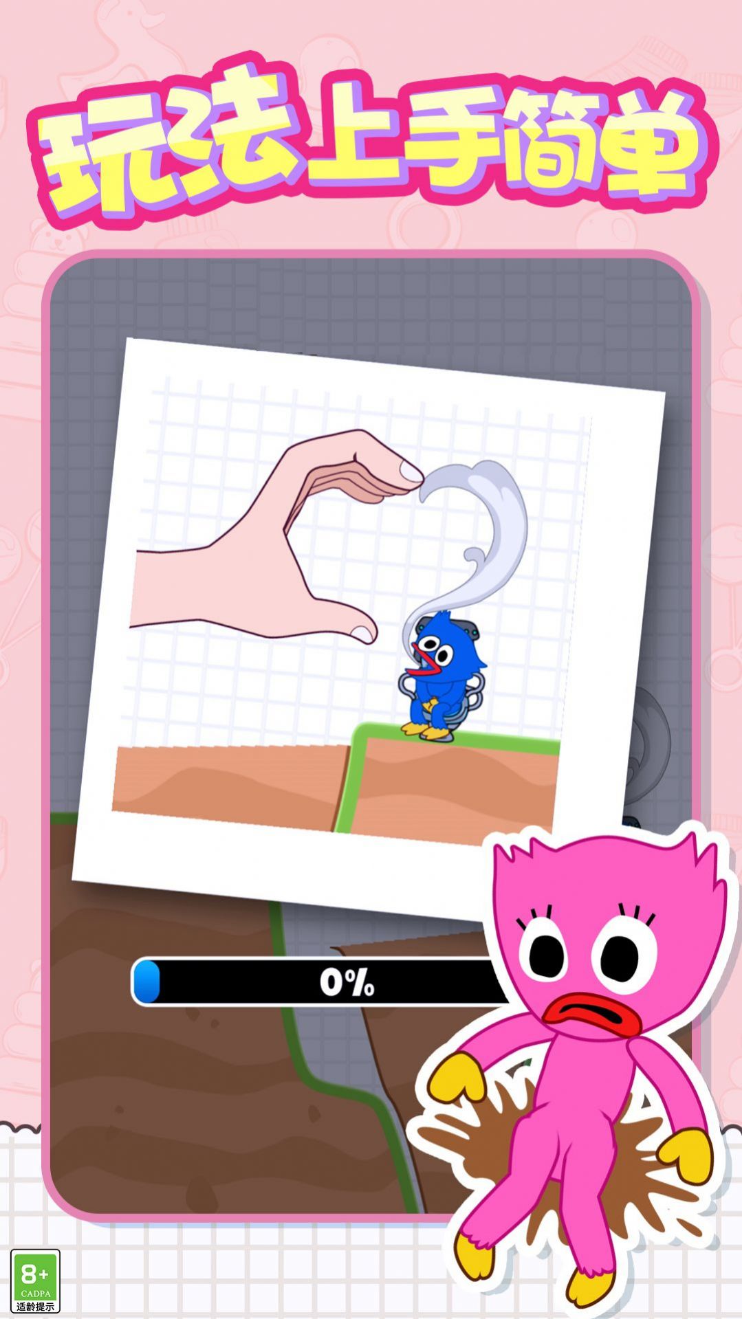 游戏采用高清粒子渲染技术,线条绘制时会实时产生物理反馈效果。每个角色都有数十种呆萌表情,会根据游戏进程做出不同反应。背景音乐采用动态混音技术,会随绘制进度自动调节节奏。独特的"完美通关"系统会记录玩家的最优解,支持回放分享功能。每周举办的速通挑战赛让高手们可以一决高下。